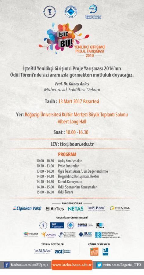 2016 İŞTEBU İNOVATİF GİRİŞİMCİ PROJE YARIŞMASI KAZANANI
