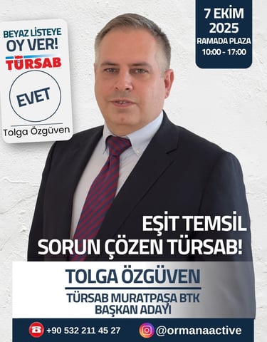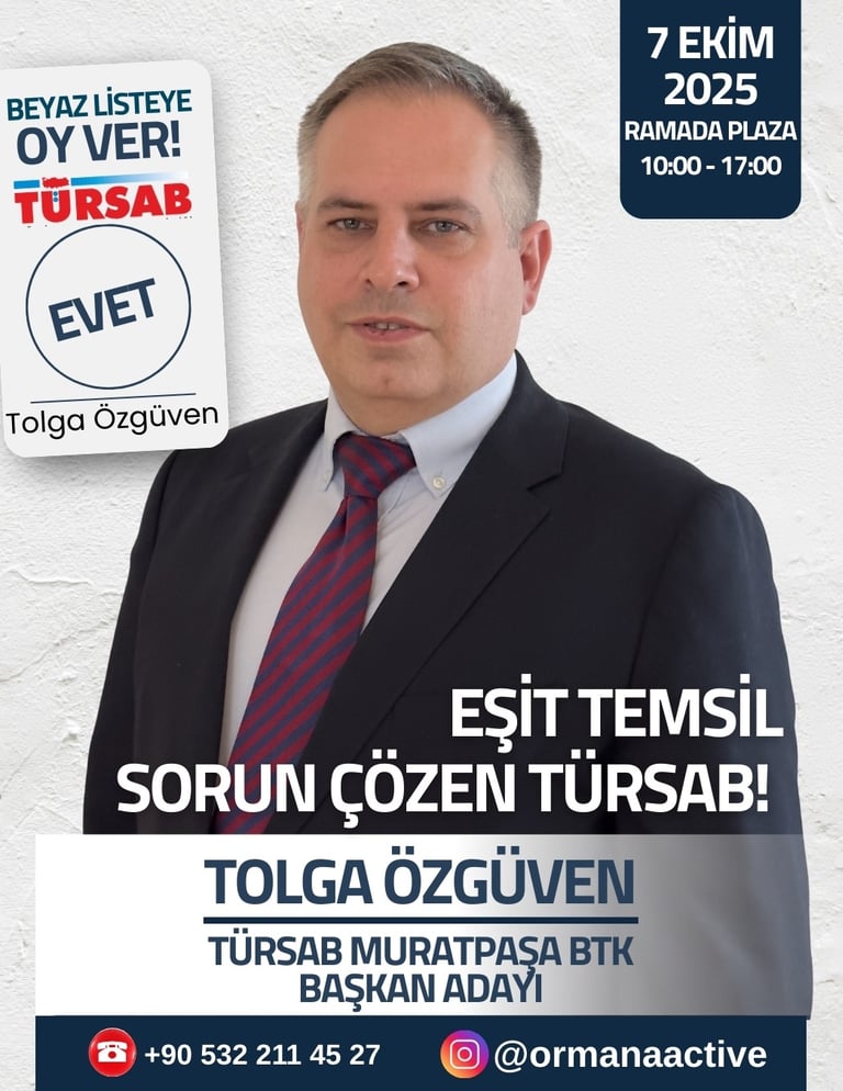 7 Ekim 2025 Salı günü saat 10:00 ile 17:00 arasında Ramada Plaza Antalya Otelinde yapılacak olan TÜRSAB Muratpaşa Bölge Temsil Kurulu Başkanlığı için seçimlerde beyaz listede buluşuyoruz.